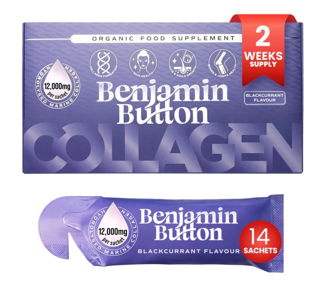 Organic Marine Collagen 10000mg and 12000mg plus Vitamin - 14 Blackcurrant Sachets
